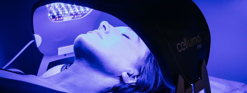 Tecnología de luz LED Celluma y activos iluminadores para revelar una piel más radiante, pareja y llena de vida.